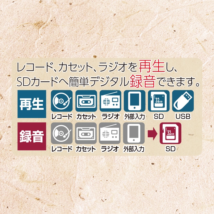 ※SDカードは付属しません、別途ご用意をお願いします。※カセットテープへの録音はできません。