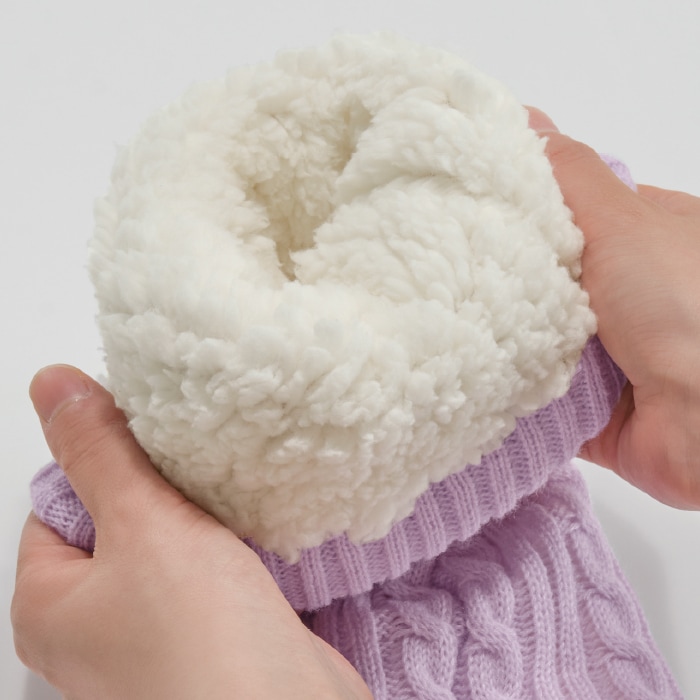 商品の仕様 ◎適応サイズ(約cm):ふくらはぎ回り28〜45・足首回り20〜35 ◎素材:編地部分=アクリル100%、ボア部分=ポリエステル100% ◎カラー:ラベンダー、ライトグレー ◎中国製 10130808