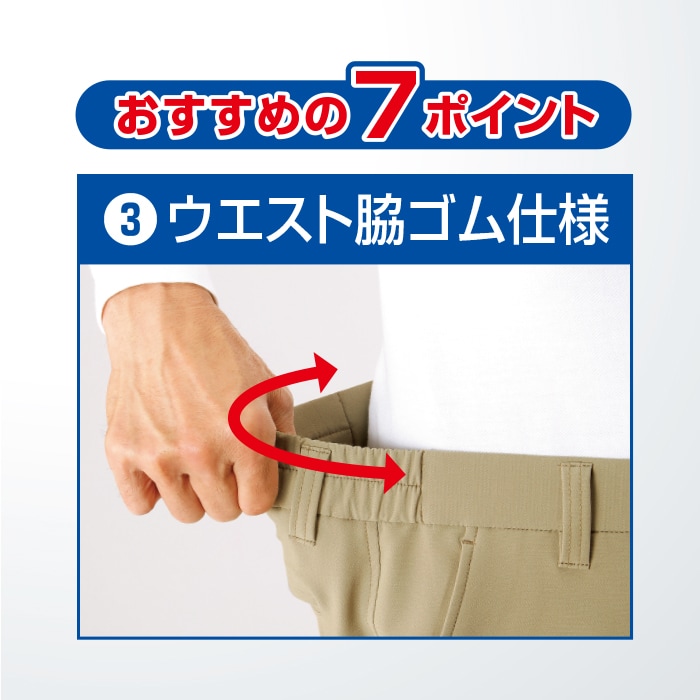 ◎仕様:ウエスト両脇ゴム、左右ポケット、後ろ左右ポケット、前ファスナー