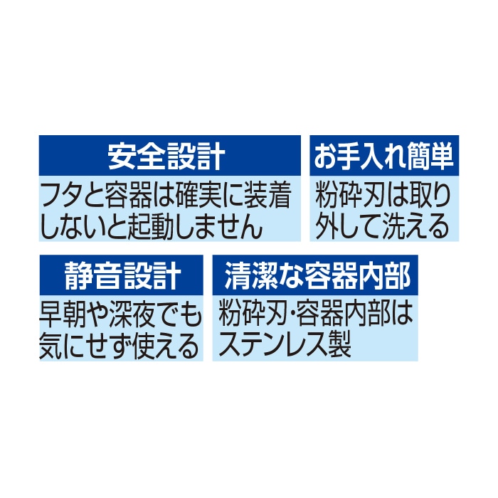 ◎材質:本体/ABS、ふた/PC、容器/SUS、粉砕刃/SUS+PPS