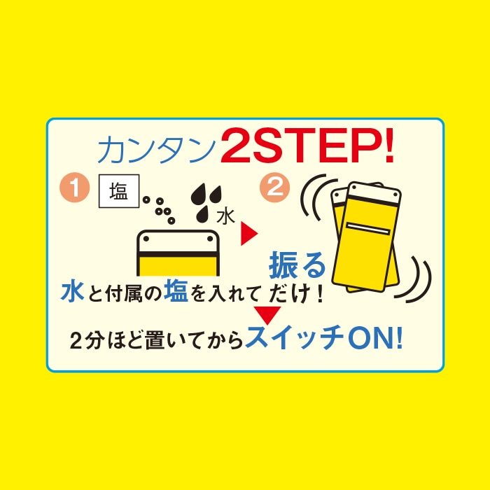 水と付属の塩を入れて振るだけで発電! 〜火や電池を使わない!