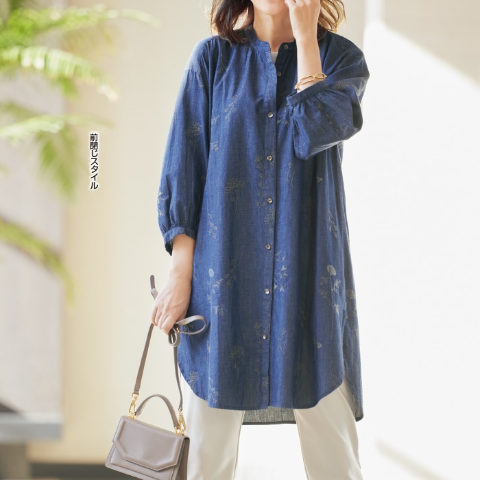 ※刺しゅうは総柄です。※裁断により柄位置が異なる場合がございます。※製品洗いを施している為、色ムラのある風合いが特徴です。※色落ちの恐れがございますので、他の製品との同時洗いはお避け下さい。※商品により柄の出方が多少異なる場合がございます。※アクセサリーや靴等は、お買上げ商品には含まれませんのでご注意ください。