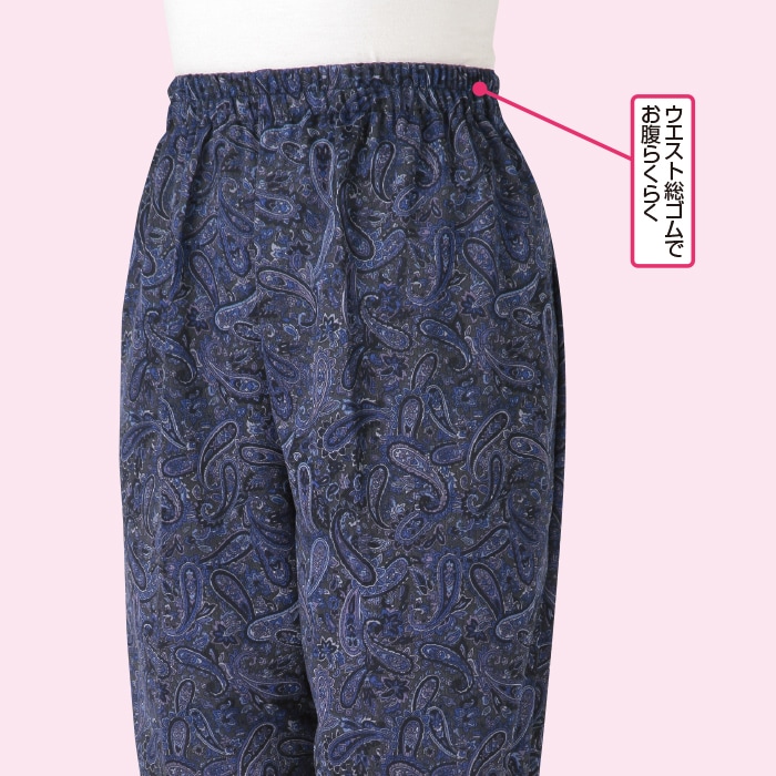 ◎仕様:ウエスト総ゴム、右脇ポケット、裾リブ