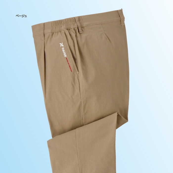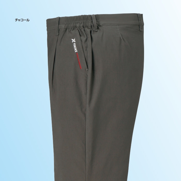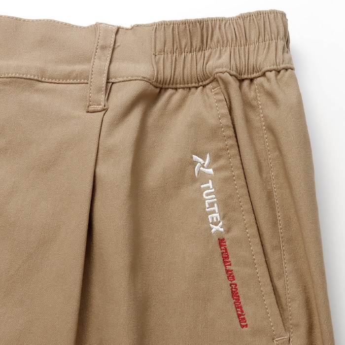 ◎仕様:前開きファスナー、ウエスト脇ゴム、両脇・右後ポケット(右脇ポケット内コインポケット付)、ベルトループ付