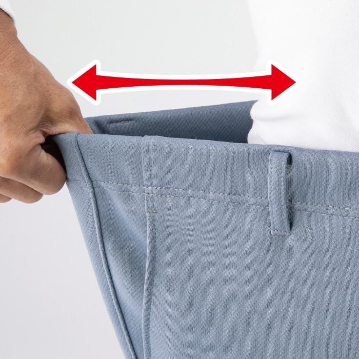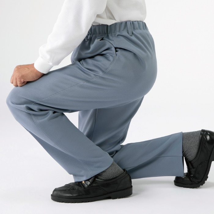 ◎仕様:前開きファスナー、ウエスト総ゴム、両脇ポケット、ベルトループ付