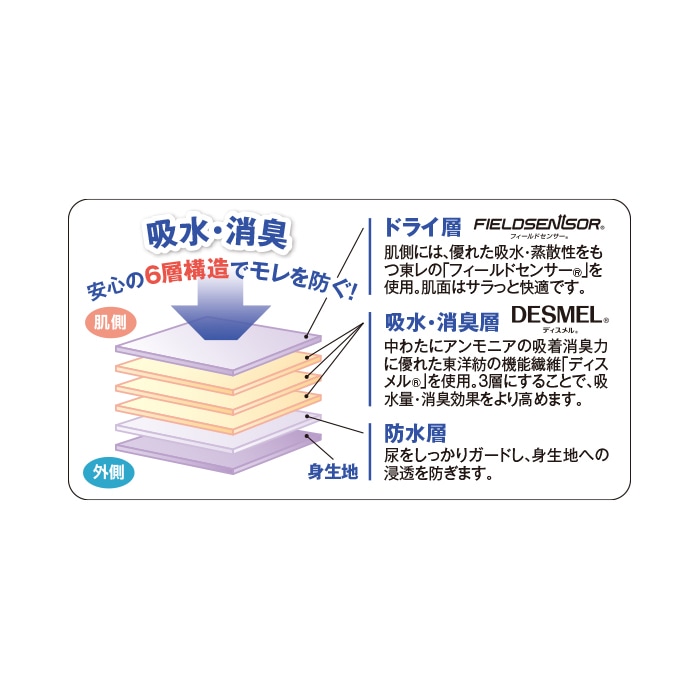 ◎素材:身生地/綿100%、ウエスト・足口レース部/ナイロン、ポリウレタン、ドライ・防水層/ポリエステル100%、吸水層/アクリル、アクリレート