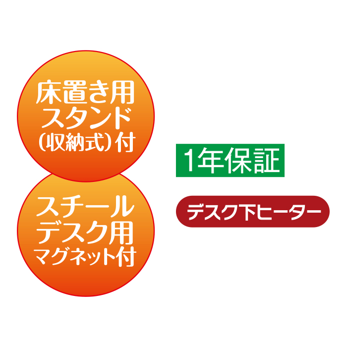 ◎付属機能:スチールデスク取付け用マグネット・床置き用スタンド(収納式)