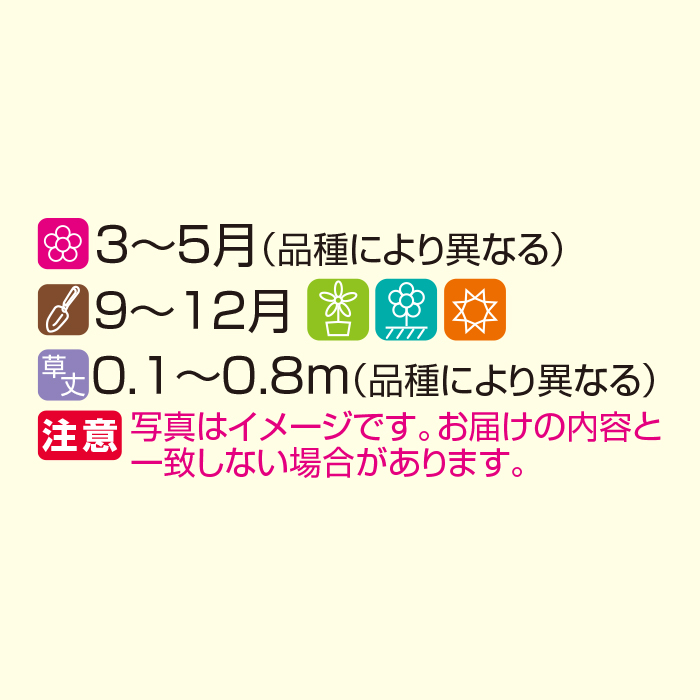 商品の仕様 ◎生産国:日本・オランダ ◎チューリップなどの球根5種類以上のおまかせ100球 ◎春の開花が待ち遠しい球根をたくさん詰め込みました。※ 商品のお届けはご注文後、約2週間前後となります。 10054224