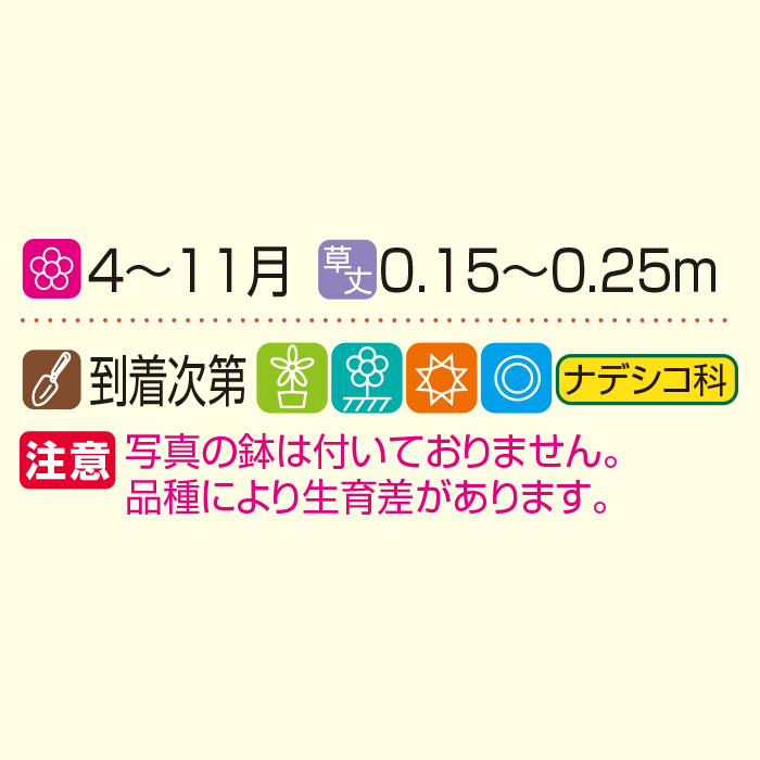 商品の仕様 ◎生産国:日本 ◎アナ、かほり 各1株 ◎まとまりの良いコンパクトな草姿で、鉢植えにもおすすめです。花色・花型が異なる2品種のセットです。※ 商品のお届けはご注文後、約2週間前後となります。 10059487