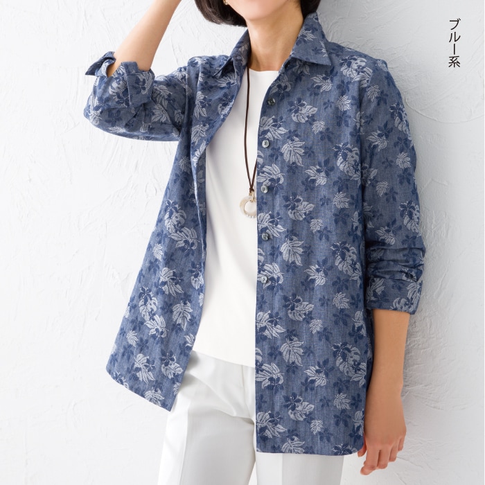 リーフ柄 ダンガリージャカードブラウス FP37