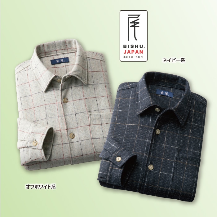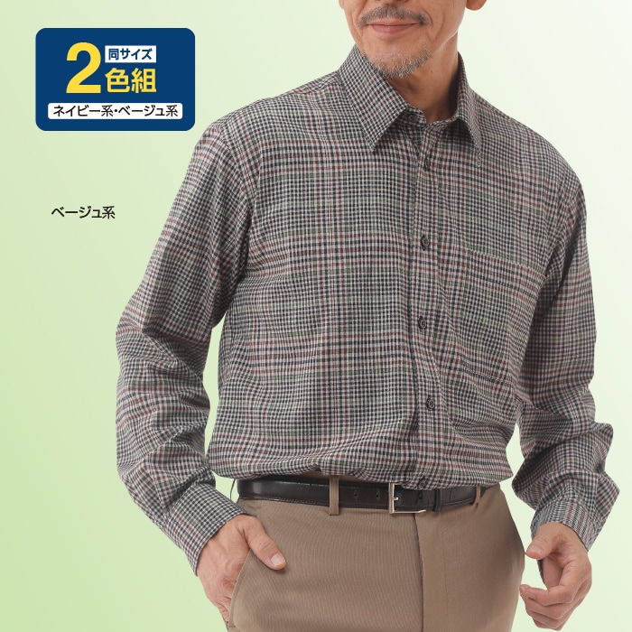 綿混ストレッチチェック長袖フランネルシャツ2色組 HW-69