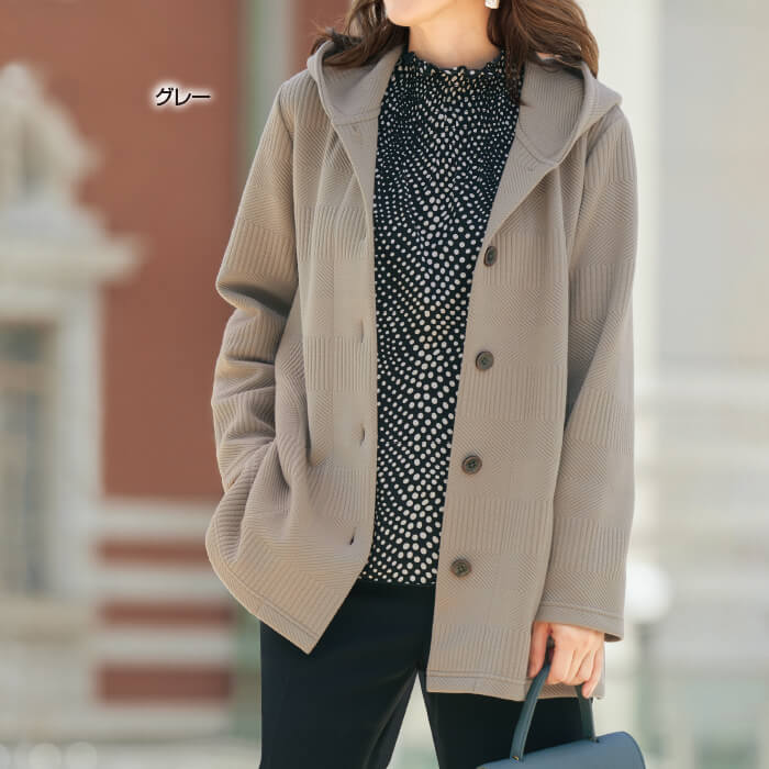 フード付ジャカード カットソージャケット TY-349