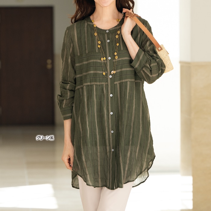 綿100%先染めストライプロングブラウス TY-363