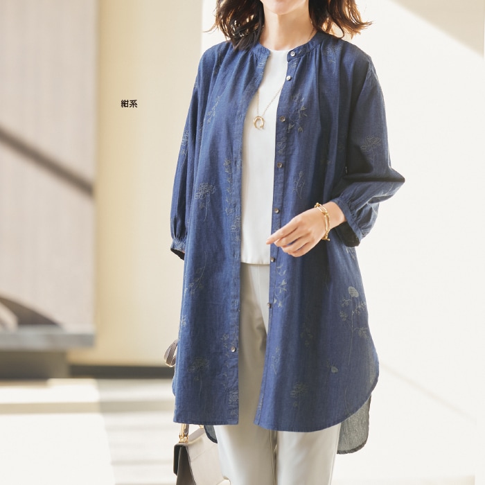 綿デニム生地刺しゅう入りロングブラウス TY-362