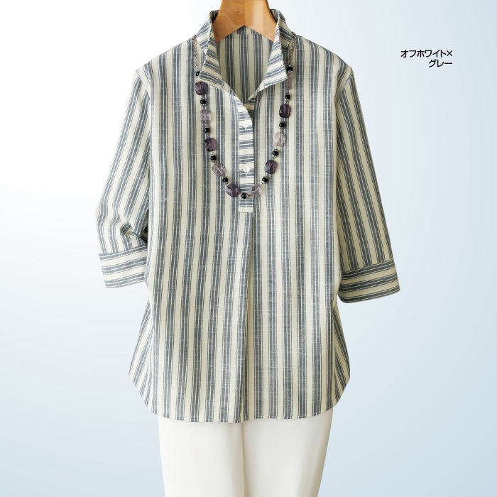 綿混先染めストライプ衿付ブラウス TY-366