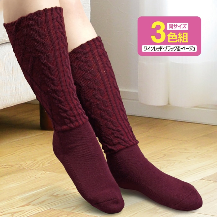 遠赤素材の二重編みぽかふか靴下3色組 MS-54