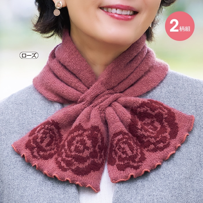 通すだけふんわり華やかニットマフラー 2柄組 KO58