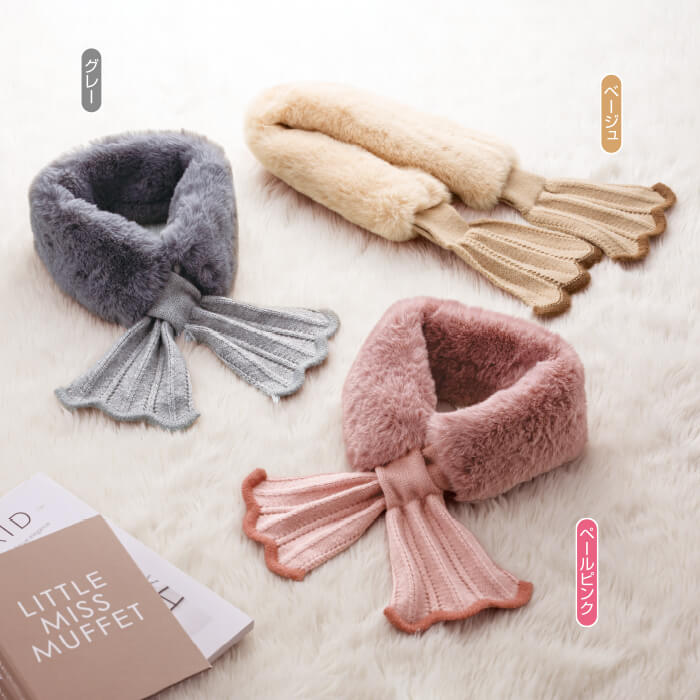 大人キレイなファー&ニットのつけ襟マフラー SG83