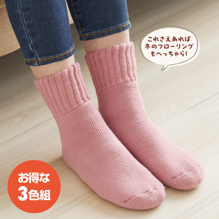 ふかふかシャギーのあたたか靴下 3色組 SB279