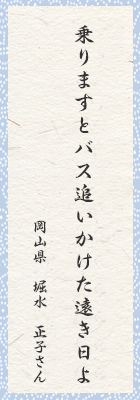 日に何度も来ないバス。バックミラーにバスを追いかける人の影が。