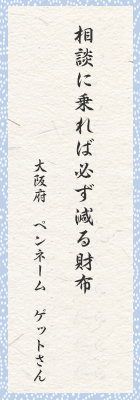 相談に金と無縁の話など。人がいいもんだから財布は軽くなるばかり。