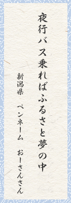 ふるさと行きの夜行バス。山や川は昔のままか。